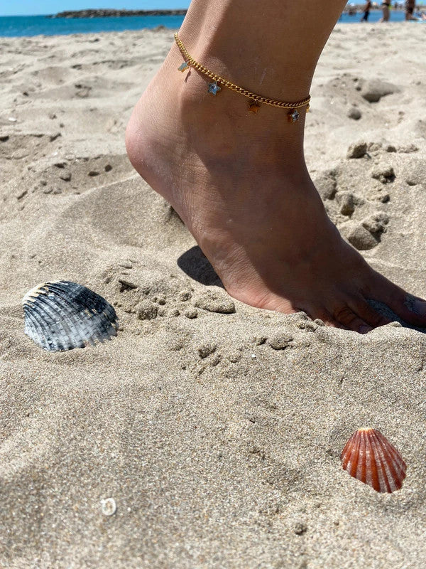 Bracelet de cheville avec pendentifs en forme d'étoile avec zircon, chaîne en acier inoxydable doré