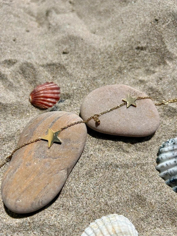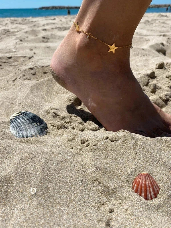 Bracelet de cheville avec pendentifs en forme d'étoile, bracelet de cheville doré