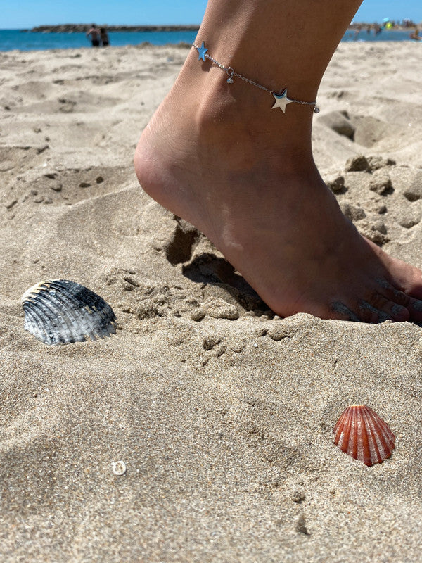 Bracelet de cheville avec pendentifs en forme d'étoile, bracelet de cheville en acier inoxydable