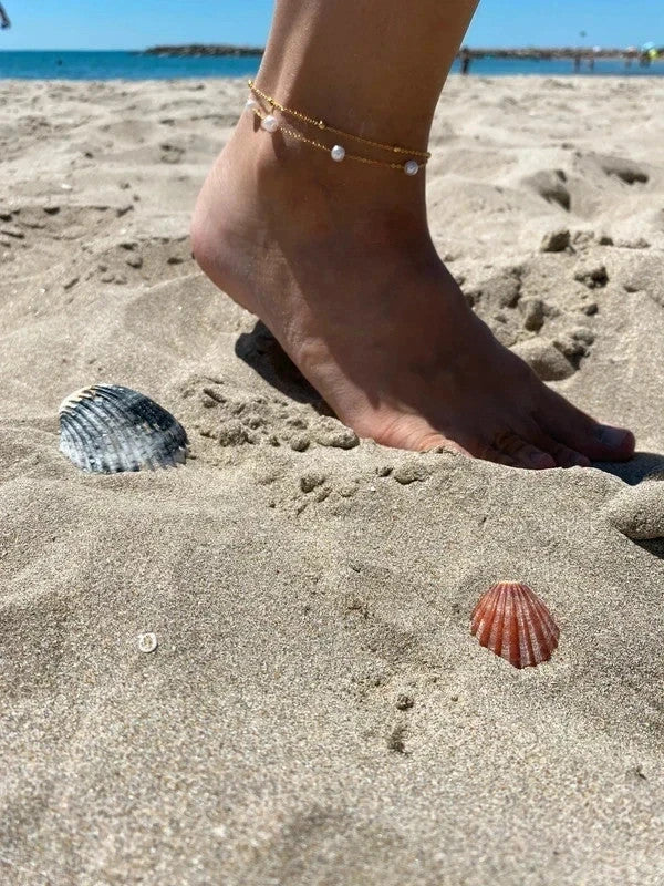 Bracelet de cheville avec pendentifs perles, bracelet de cheville doré, bijou d'été