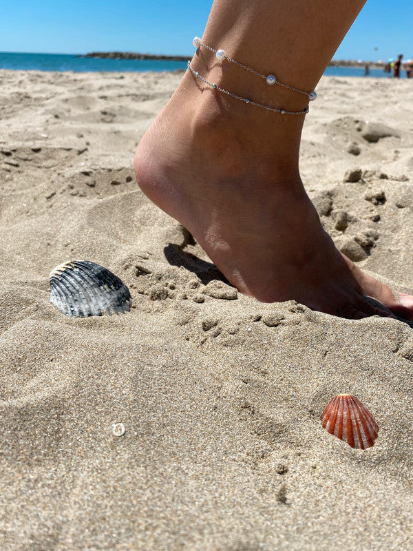 Bracelet de cheville avec pendentifs perles, bracelet de cheville en acier inoxydable, bijou d'été