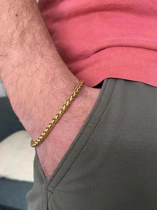 Bracelet en acier inoxydable doré, bracelet chaîne byzantine, bijou homme, cadeau pour lui