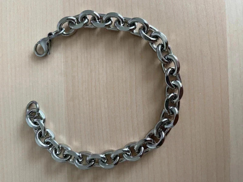 Bracelet homme acier inoxydable, bracelet chaîne argentée, chaîne trombone, cadeau pour lui, condition: Very good