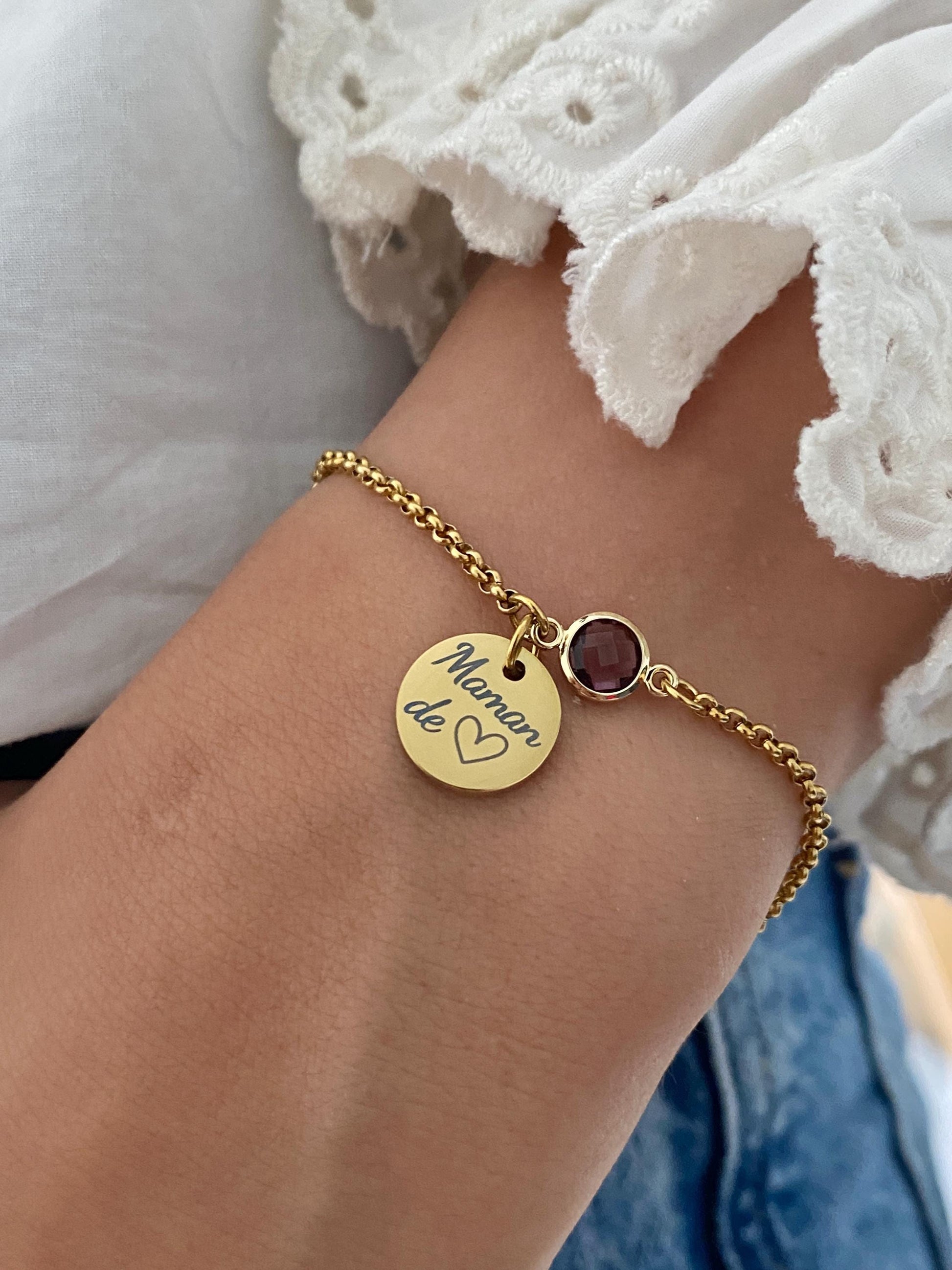 Bracelet Maman Personnalisé en Acier Inoxydable, Bijou Maman Personnalisé avec Pierre de Naissance, Breloque Gravée, Fête des Mères