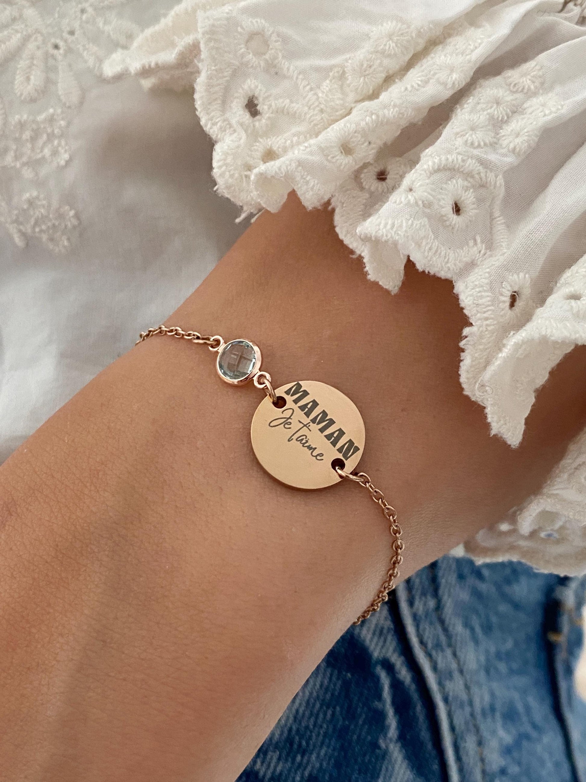 Bracelet Maman Personnalisé en Acier Inoxydable, Bijou Maman Personnalisé avec Pierre de Naissance, Breloque Gravée, Fête des Mères