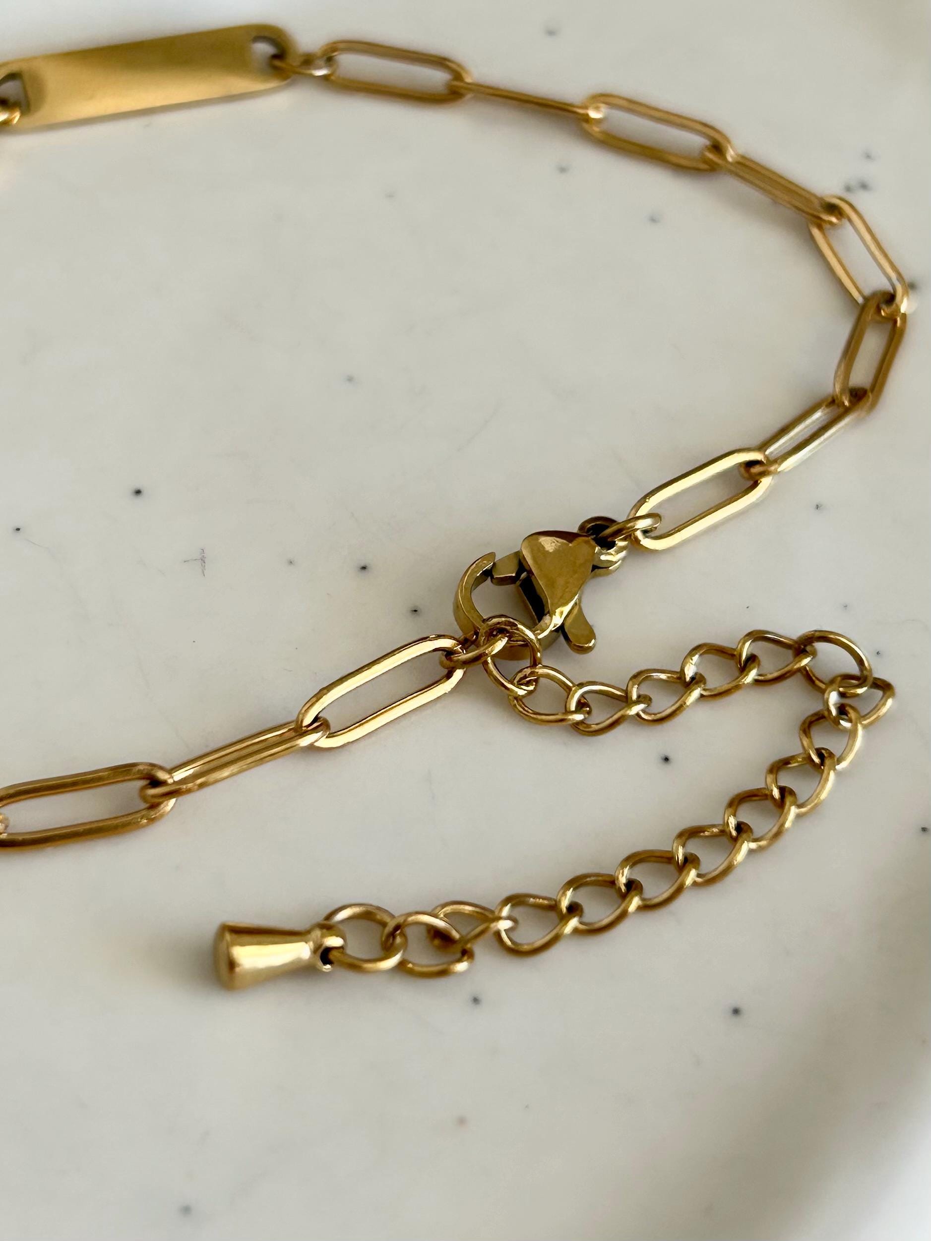 Bracelet personnalisé en acier inoxydable, bracelet barre avec prénoms gravés, bracelet chaîne trombone ajustable, cadeau fête des mères