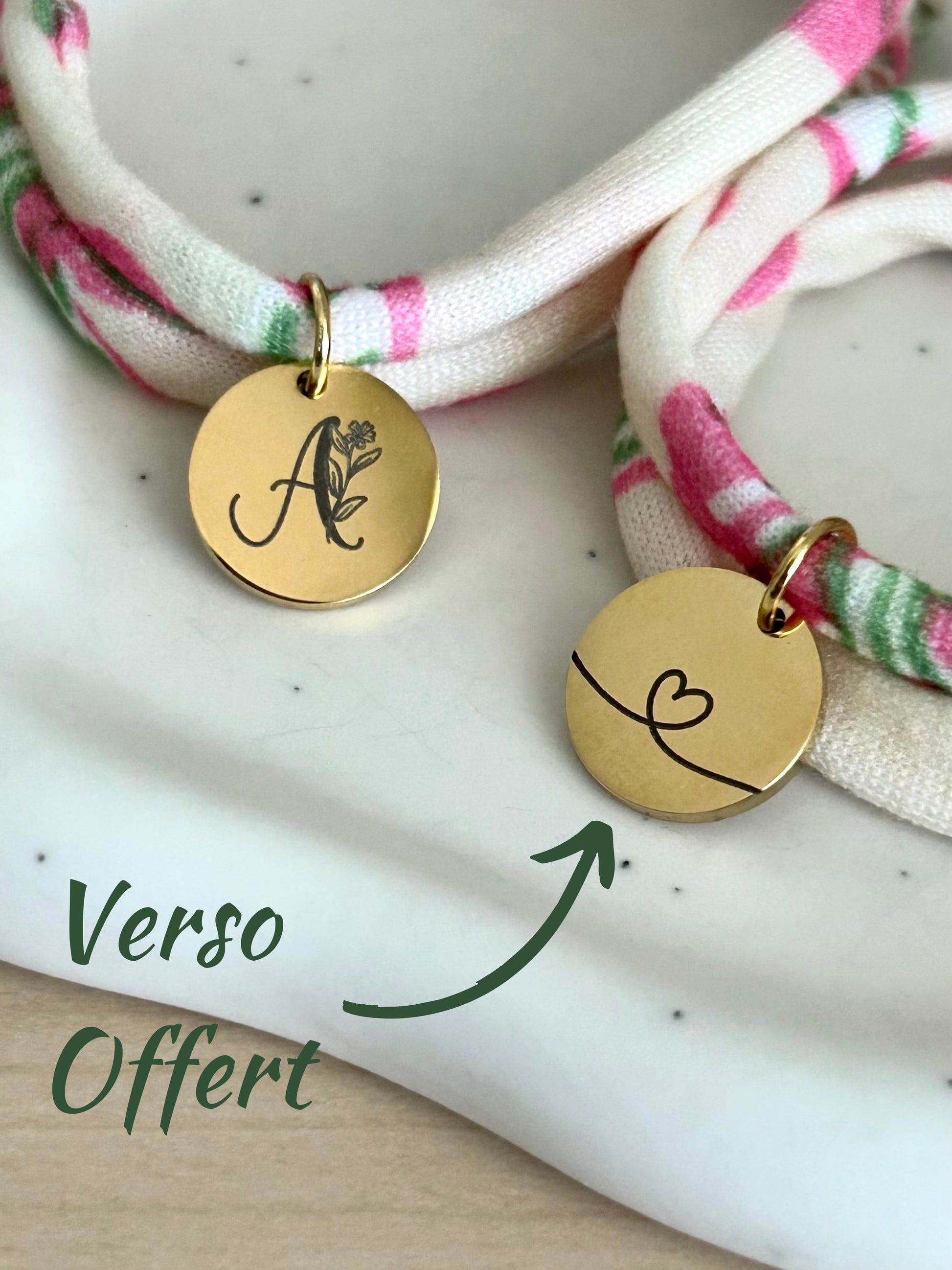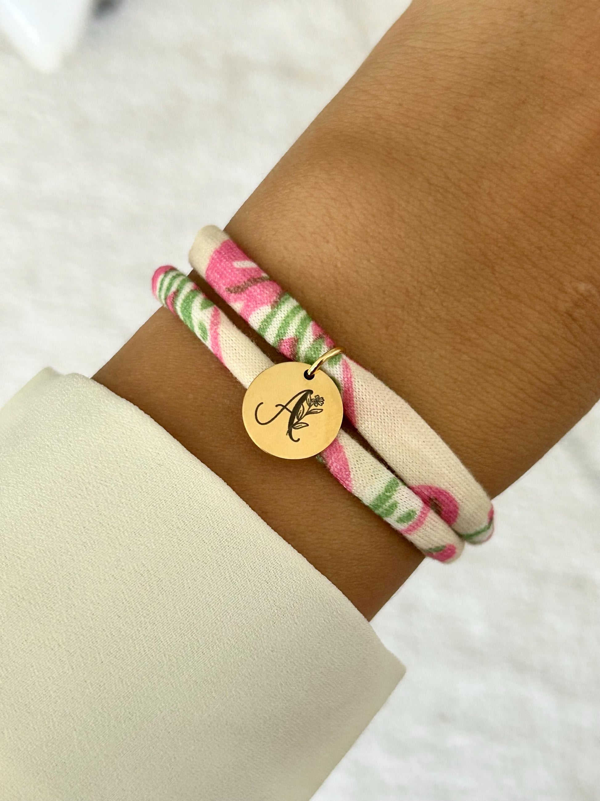 Bracelet personnalisé en cordon liberty, bracelet lettre florale, bracelet lettre initiale, médaille à graver, cadeau fête des mères