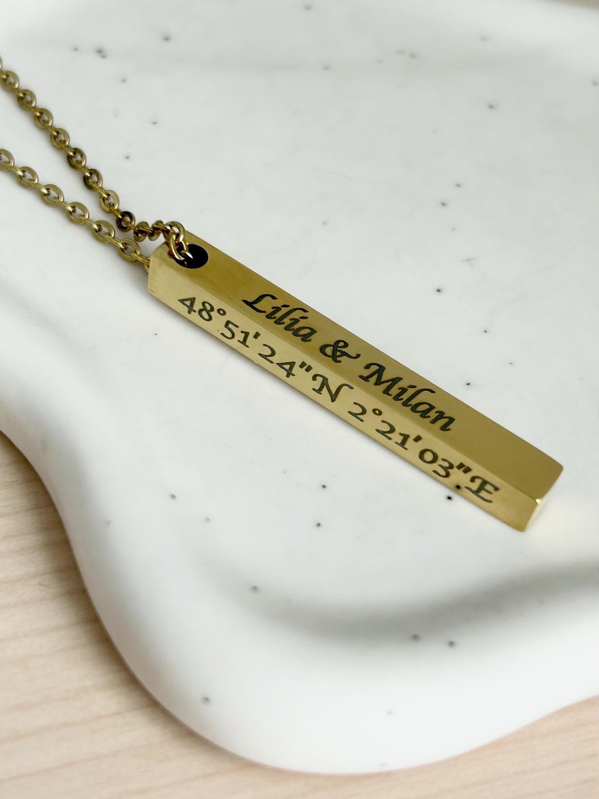 Collier barre verticale personnalisé, collier gravure personnalisée, collier nom personnalisé barre 3D, cadeau personnalisé, fête des mères
