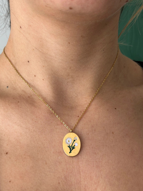 Collier floral en acier inoxydable, pendentif fleur Aster, collier du mois de naissance